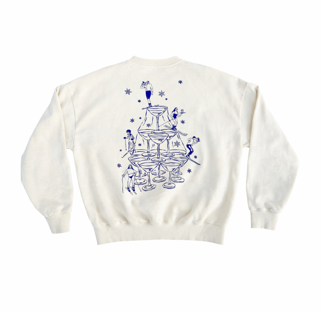 "SKIING IS EASY" KNIT SWEATER | (Coffee/Cream)