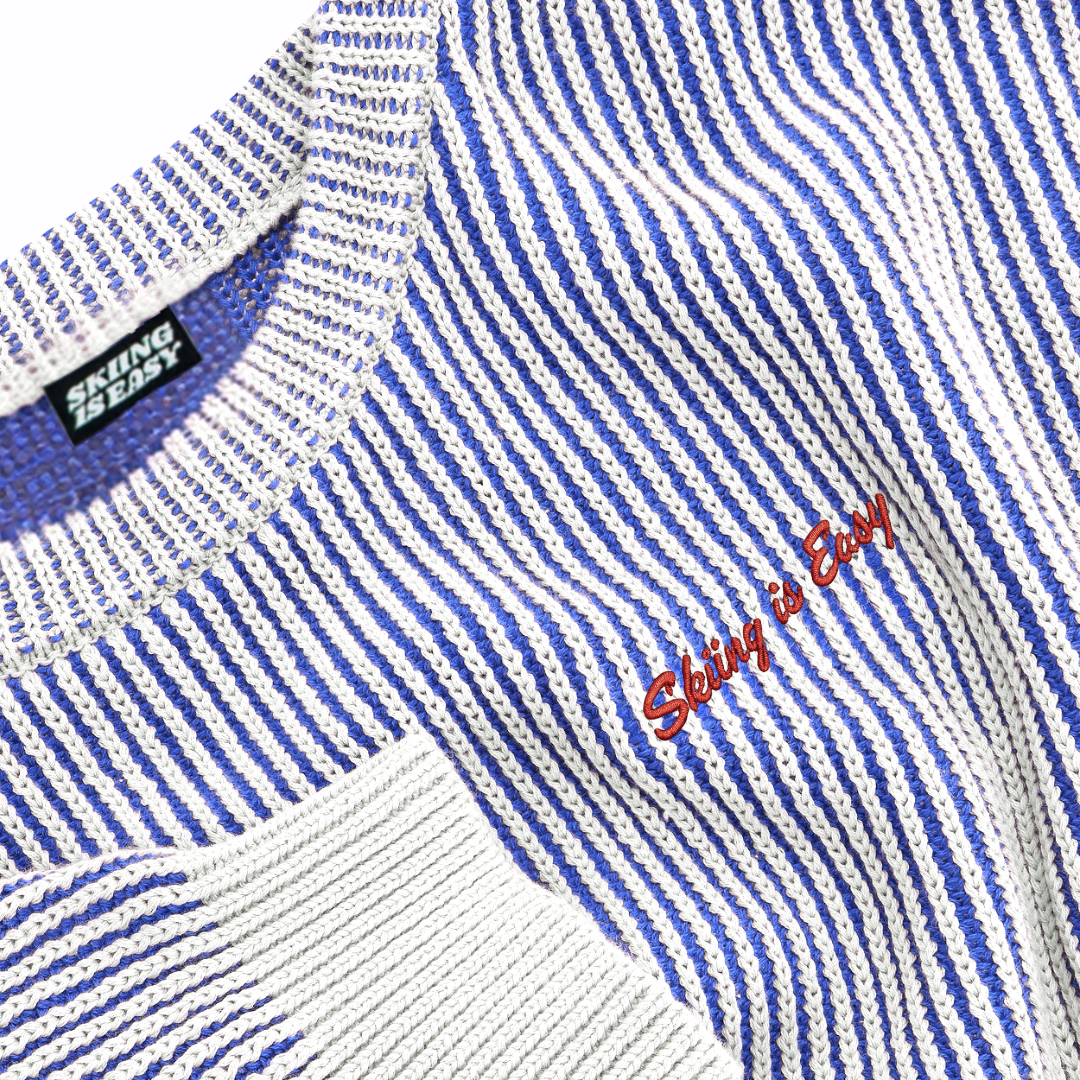 "SKIING IS EASY" KNIT SWEATER | (Cream/Blue)