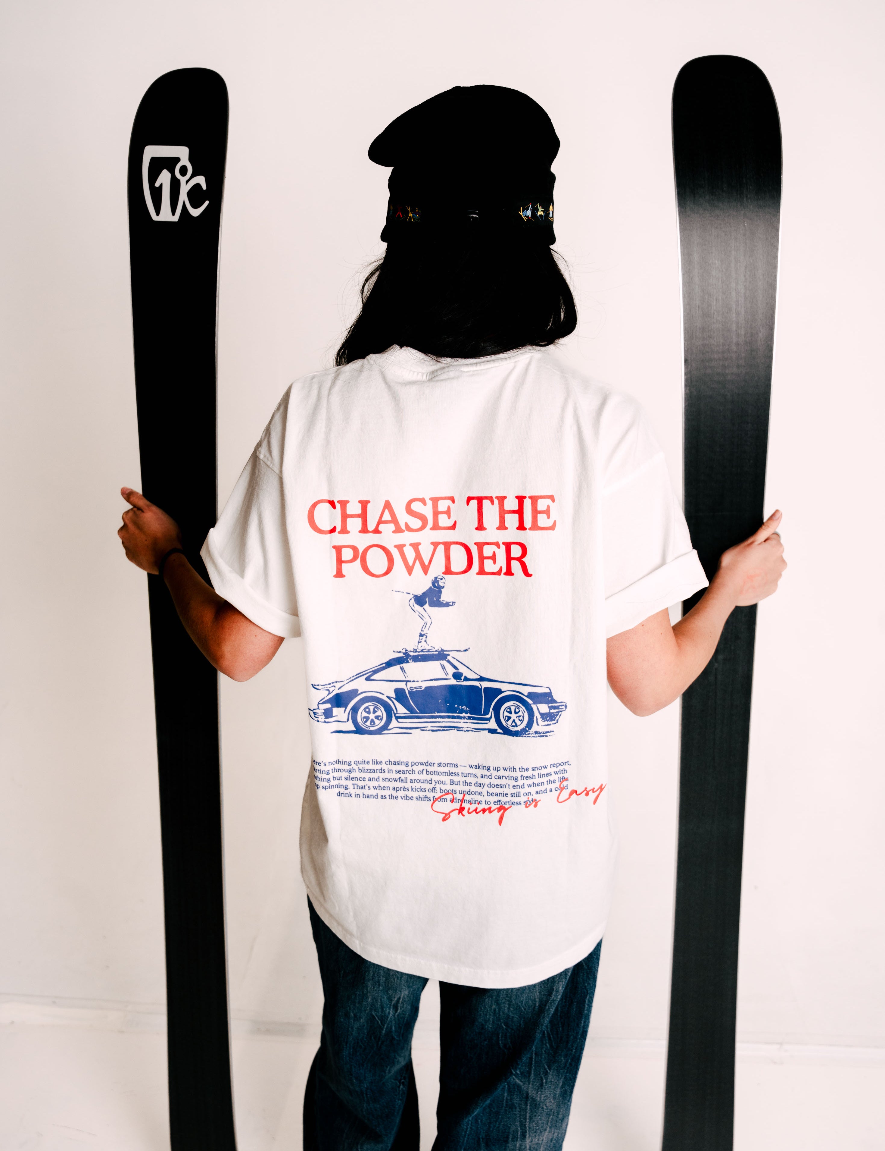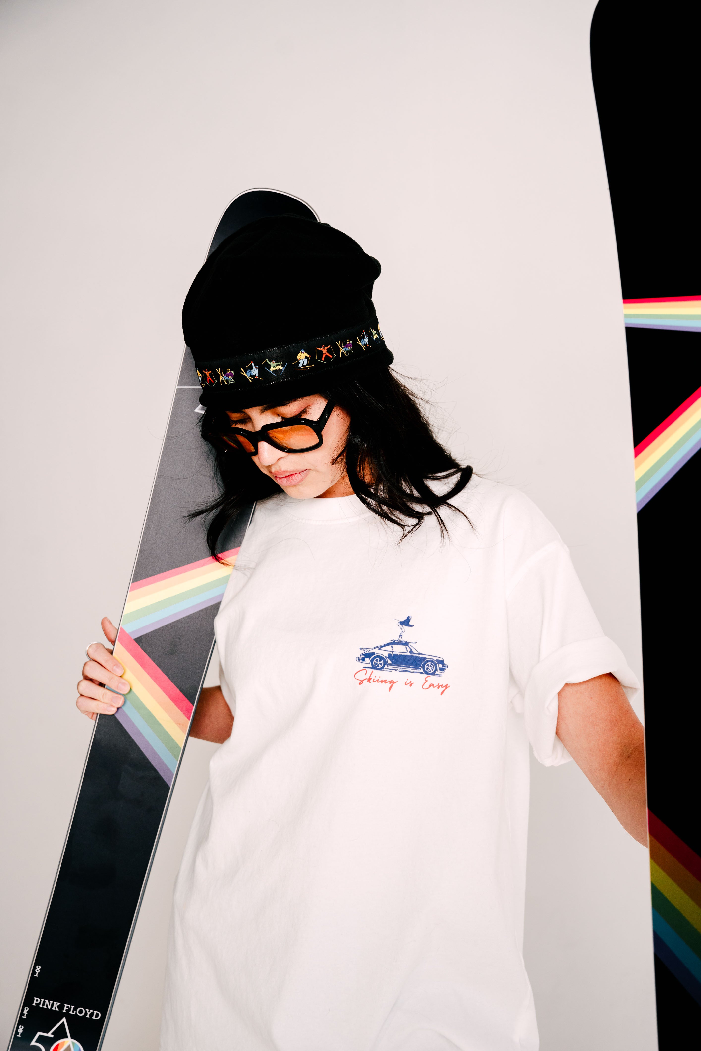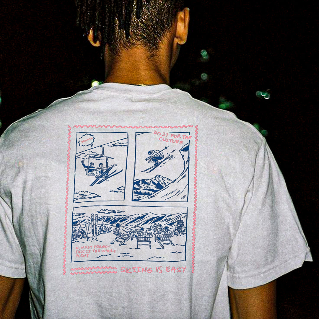 EMBROIDERED "SKIING IS EASY" | VINTAGE HEAVY TEE (BLUE)