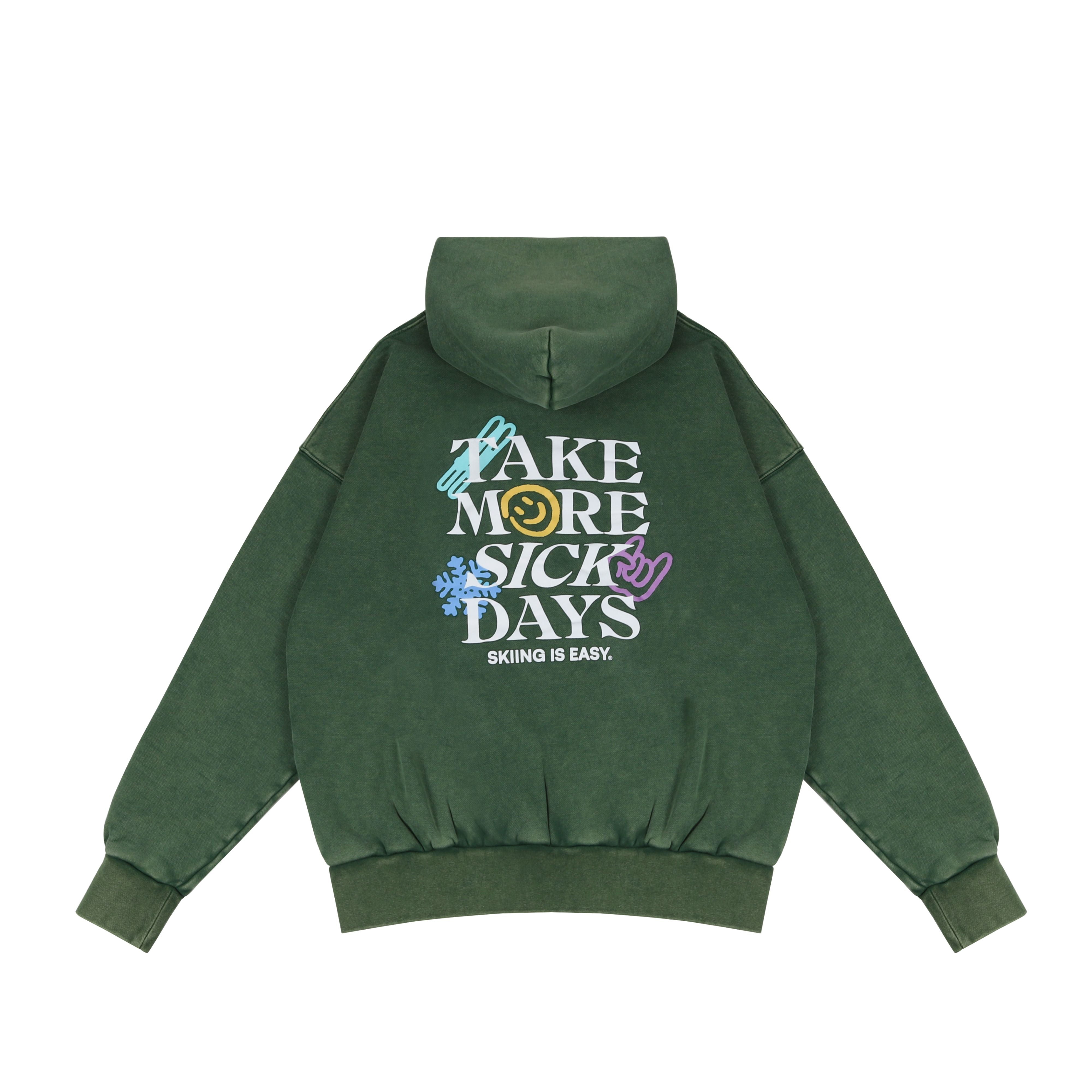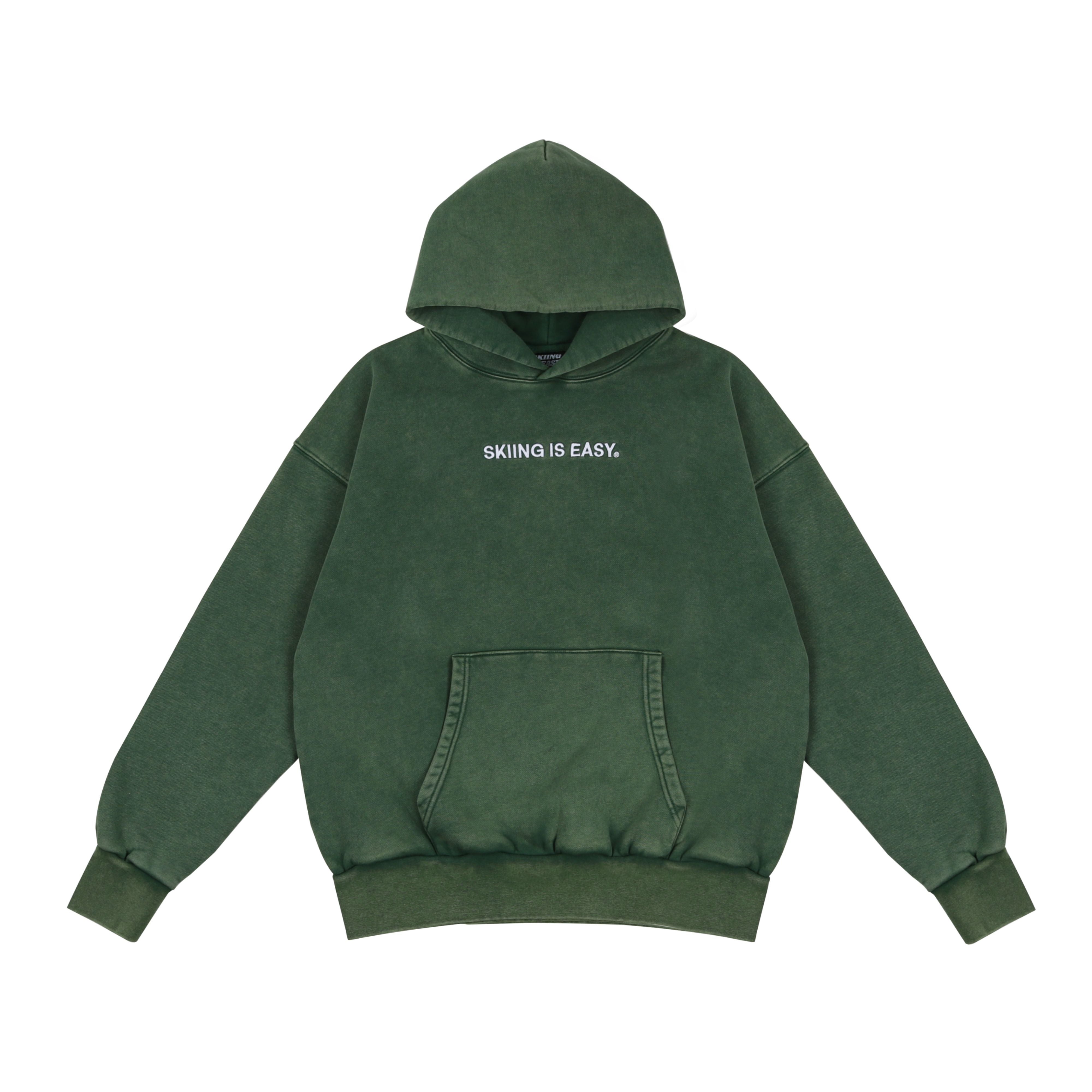 EMBROIDERED "SKIING IS EASY" | HEAVY-WEIGHT HOODIE (VINTAGE GREEN)