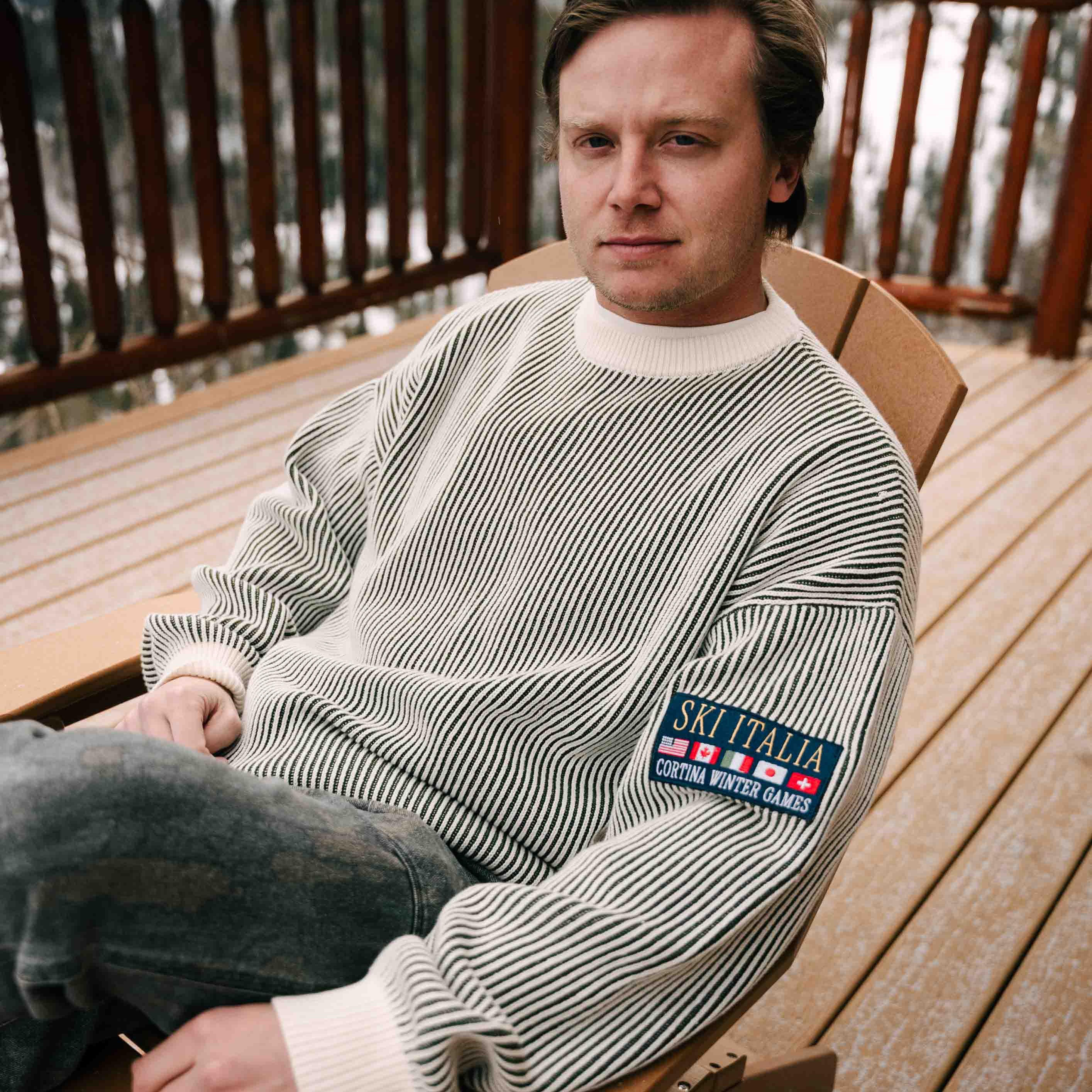 "SKI ITALIA" KNIT SWEATER | (GREEN/WHITE)