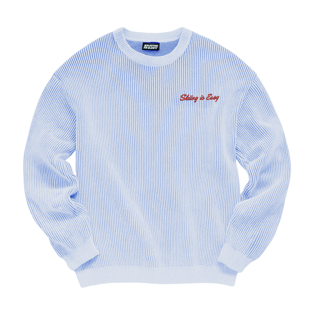 "SKIING IS EASY" KNIT SWEATER | (Cream/Blue)